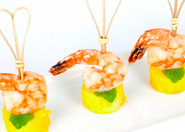 Канапе с королевской креветкой и ананасом